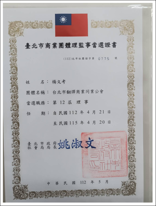 憑藉多年深耕語言服務領域的專業實力,榮獲113 年商人節「優良商號」殊榮,肯定其在翻譯品質、服務誠信與業界影響力上的卓越表現。同時,公司代表亦獲選為台北市翻譯商業同業公會理事,展現其在推動產業發展與專業標準提升上的積極投入。這兩項肯定不僅彰顯在翻譯界的專業地位,也象徵其長期以來對服務品質與產業責任的堅持。
